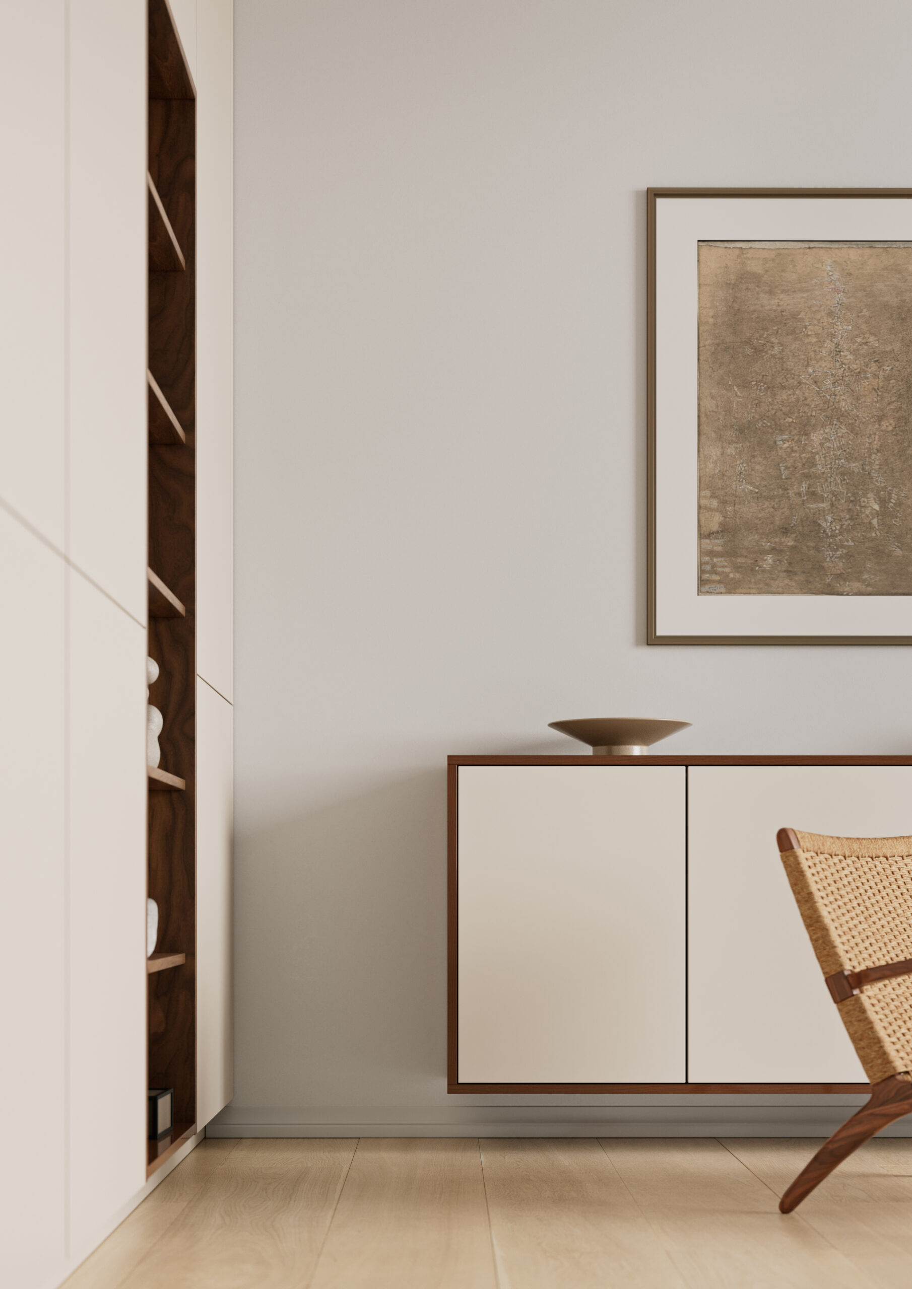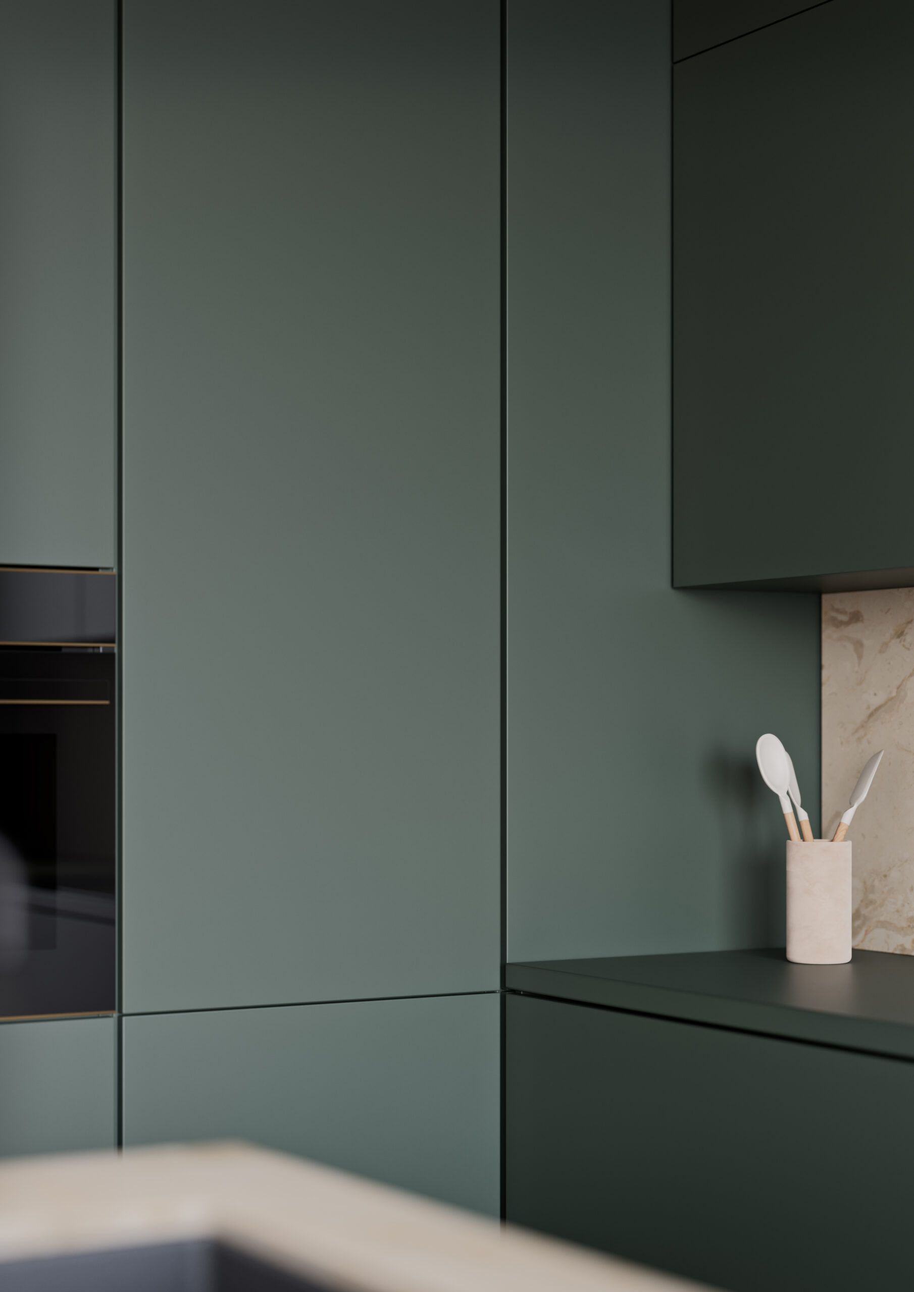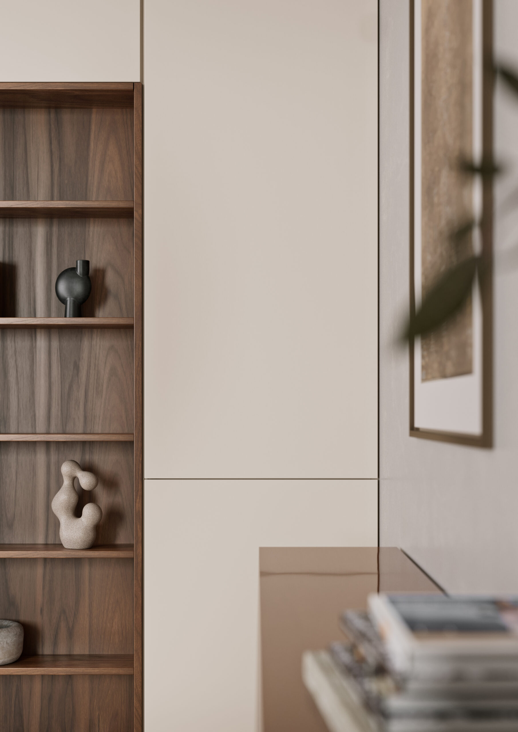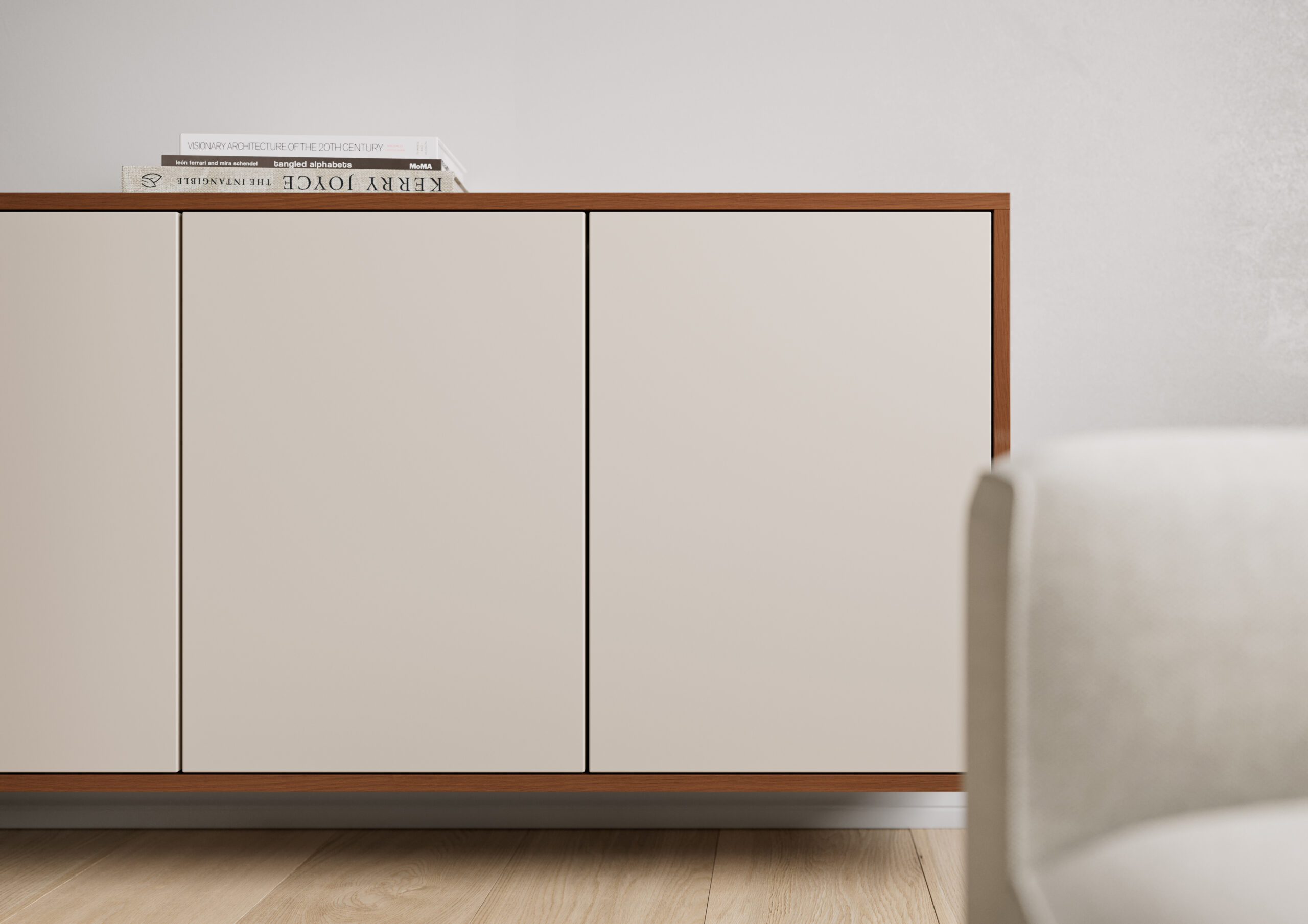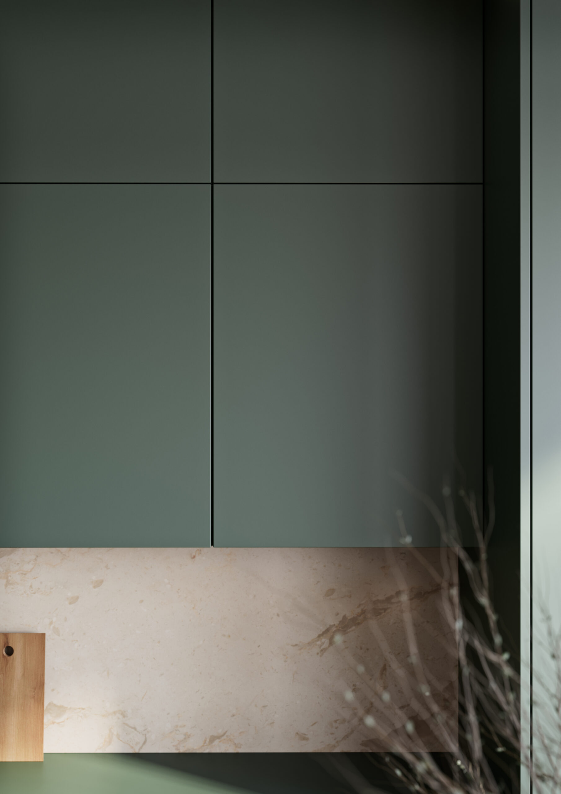 Sprytna alternatywa dla frontów lakierowanych: połączenie funkcjonalności z estetyką. Aksamitnie matowa i jednolita powirzchnia nadaje się różnych zastosowań – od kuchni po salon.